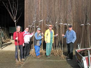 des Arbeitskreises, Obstbäume ihrer Wahl in Empfang nehmen, die sie